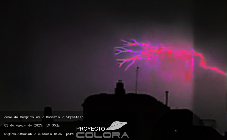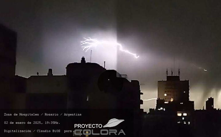 La señora Claudia sale a su balcón, vivienda ubicada en la zona de Hospitales de la ciudad, llama su atencíón un poderoso rayo en el cielo, de inmediato procede a sacar fotos al cielo advirtiendo en ellas anomalías, enviando el material a nuestro Centro de Investigción para ser analizadas.