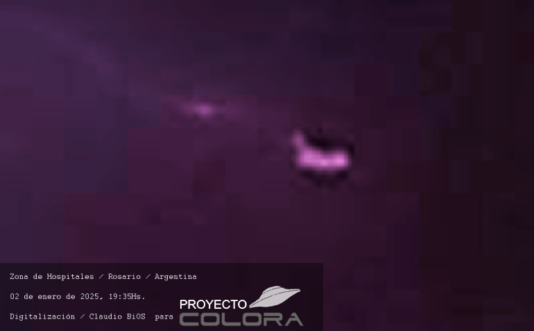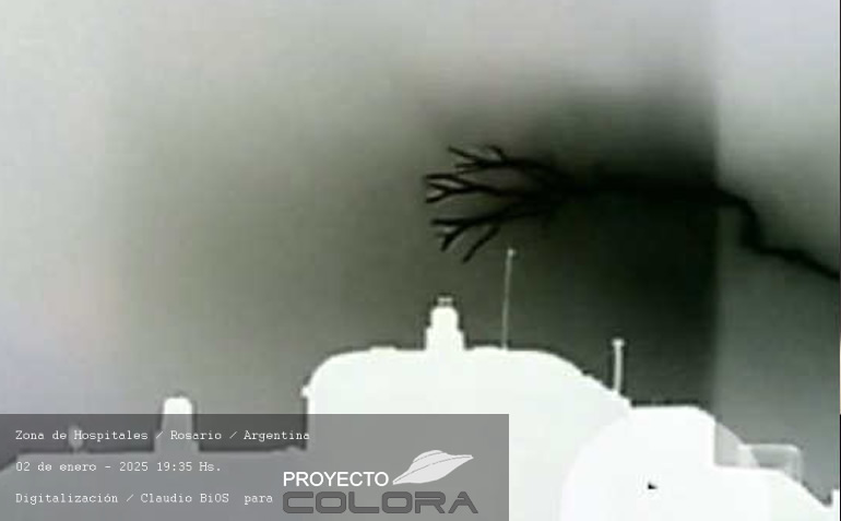 Las fotografías fueron estudiadas con riguroso criterio y tecnología adaptada a la documentación. Se puede observar un canal energético de diámetro muy amplio uniendo desde las alturas de los edificios hacia el cielo sin poder detectar su límite. En el interior del canal se producen o proyectan ramificaciones de rayos que luego se unen formando solo uno, este rayo, al salir de los límites del canal, desaparece y se puede observar un ovni secundado de una luz poco visible. Cabe destacar que en el cielo se puede ver una gran nube espesa y oscura, y hacia el horizonte se vislumbra un cielo limpio con luz solar. Se trata de la apertura de un Portal creado posiblemente por una nave suspendida, camuflada en la nube muy densa ocacionando oscuridad a todo el sector de la zona y propiciando la salida del Ovni anteriormente mencionado.